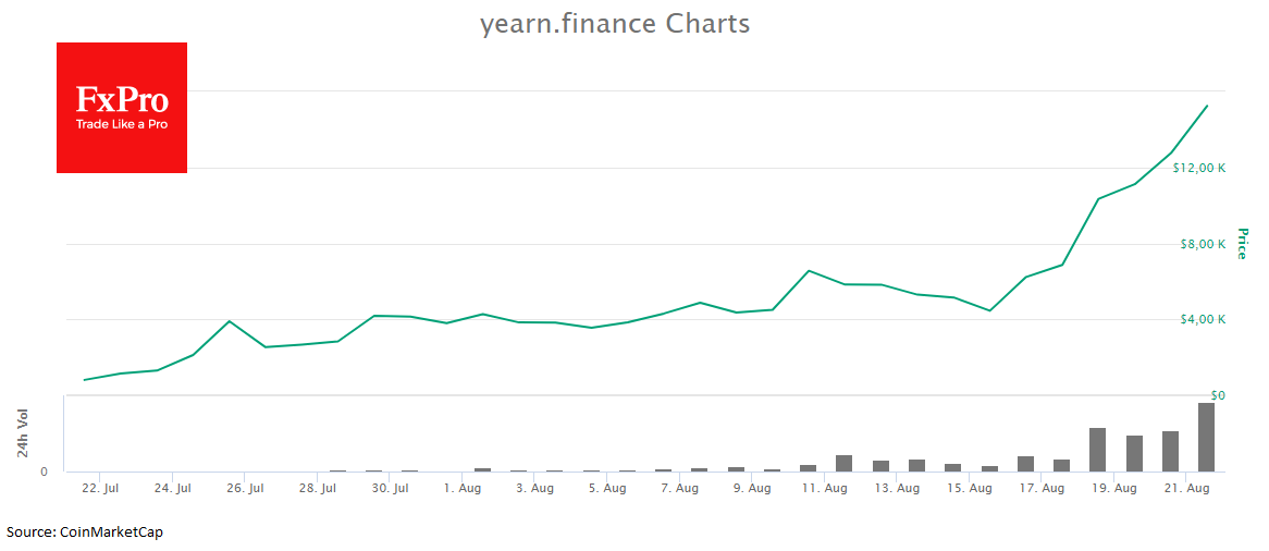 Звездой рынка альткоинов последнего времени стала монета yearn.finance (YFI). Её цена взлетела до $15400, оказавшись самой высокой за монету на крипторынке. За месяц показав двадцатикратный рост, став живым доказательством возможности появления на крипторынке новых “единорогов”. Стремительный рост монеты также отражает популярность децентрализованного финансового сектора. Создатели проекта решили пойти по пути биткоина, ограничив эмиссию всего 30,000 монет YFI. Такое ограниченное предложение подстёгивает быстрый рост цены.