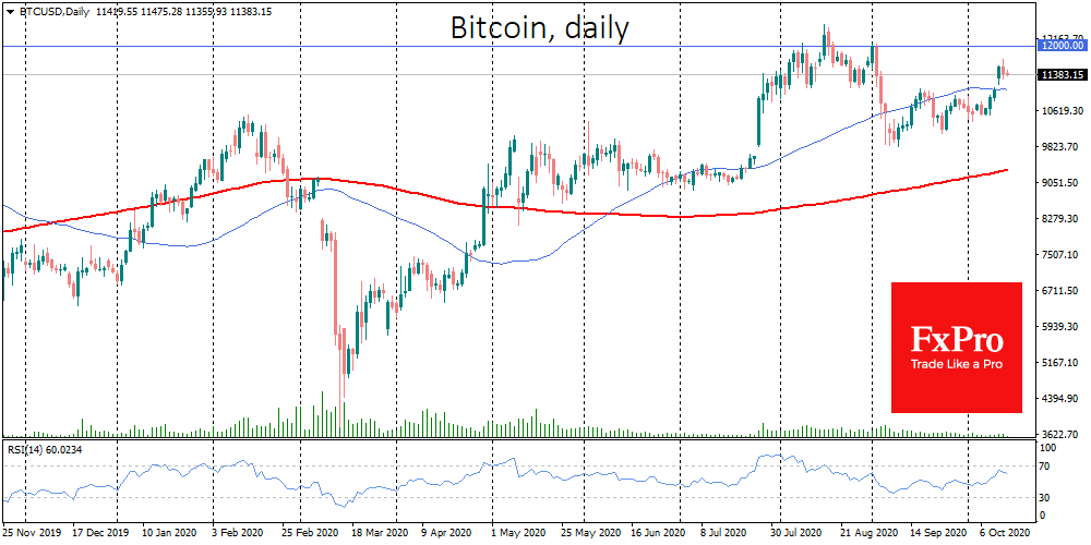 Рост цены выше $12K как нельзя лучше бы поддержал позитивные настроения на рынке и направил в сторону Биткоина новые инвестиции. Пока же мы можем наблюдать процесс консолидации BTC около занятых уровней.