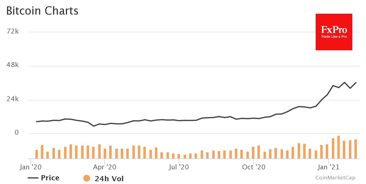Крипторынок в очередной раз возвращается на рельсы роста, а суммарная капитализация цифровых валют превысила $1.1 трлн. Биткоин показал за сутки рост на 4% и торгуется около $38K. В последний раз у этих уровней цена была по реакции на Твиттер Илона Маска.