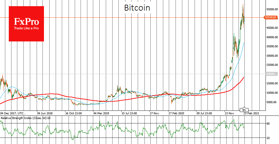 Очевидным позитивом для Биткоина и всего крипторынка в целом можно считать новость о том, что MicroStrategy выполнили и даже перевыполнили все пункты своего плана. Компания привлекла чуть более $1 млрд на покупку биткоинов и действительно купила почти 19.5K монет. Средний курс одного Биткоина составил около $53K. В сумме же MicroStrategy удерживает на своем балансе более 90 000 BTC.