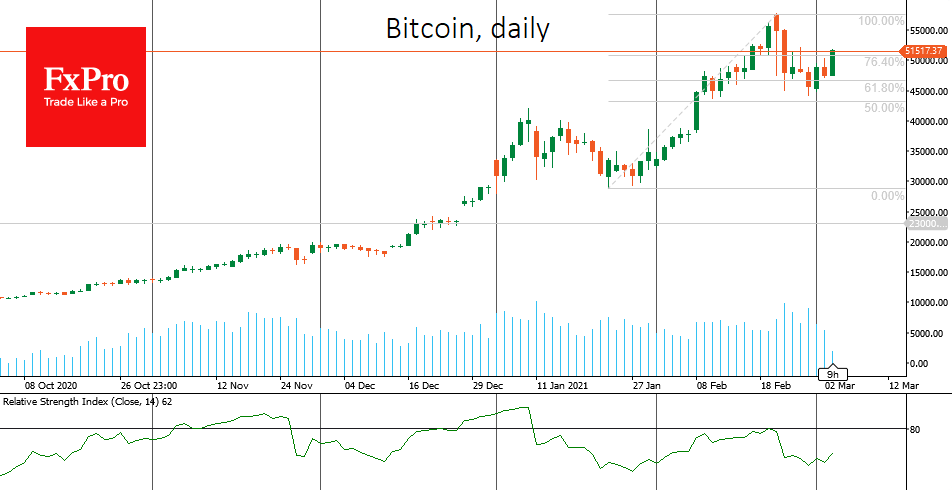 - Бит-коммент: Биткоин вновь борется за $50K