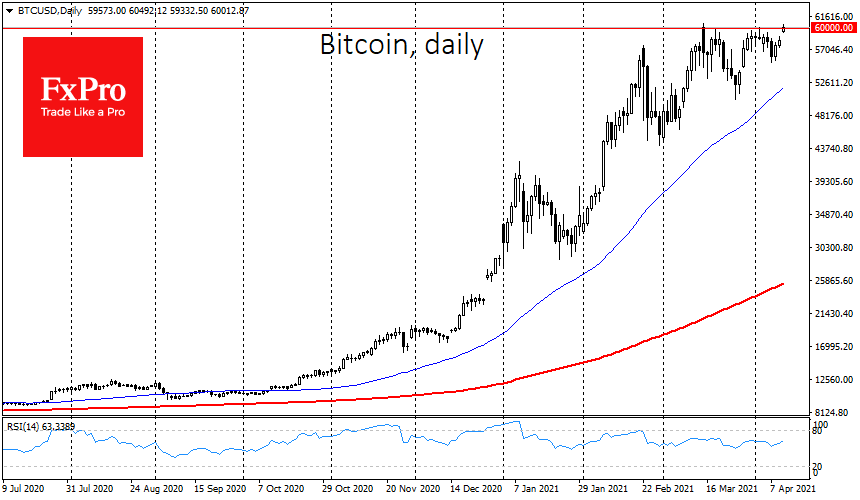 - Бит-коммент: Биткоин прорвался выше $60K на выходных