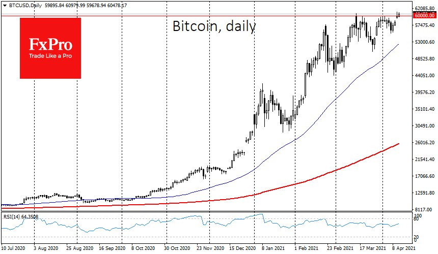 Бит-коммент: Биткоин проторговывает уровни выше $60K, но уступает по динамике альткоинам