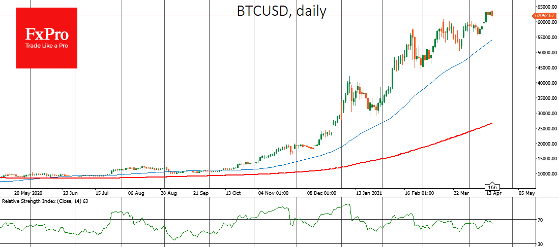 К сожалению, такая динамика криптовалюты-шутки при анемичной динамике Биткоина является тревожным признаком для всего рынка в целом, так как указывает, что на данном этапе после успешного прямого листинга Coinbase все хотевшие купить BTC его уже купили. Альткоины в целом за счет инерционного движения продолжают расти, однако если покупатели не вернутся к Биткоину в ближайшее время, мы снова можем увидеть борьбу за пороговые $60K и ниже, которая в итоге в разы более негативно скажется на всех альткоинах.