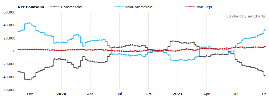 Согласно отчетам COT (Commitments of Traders), предоставляемым Комиссией по торговле товарными фьючерсами (CFTC) - за неделю, закончившуюся в прошлый вторник: