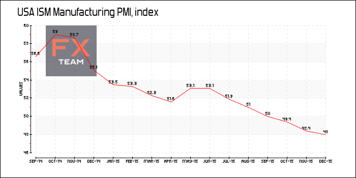 Индекс менеджеров по закупкам в производственной сфере США составил 48,2 пункта за декабрь 2015 г. по сравнению с 48,6 пункта в ноябре, сообщает Institute for Supply Management (ISM).