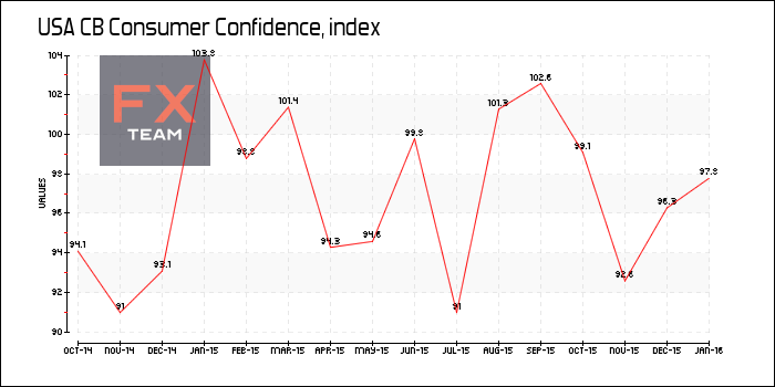 Индекс доверия потребителей возрос до отметки 98,1 в январе по сравнению с 96,3 в декабре. Экономисты прогнозировали снижение данного индекса до 96,0.