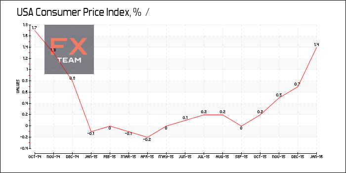 В годовом выражении темпы инфляции в США ускорились до 1,4% в январе по сравнению с 0,7% в декабре.