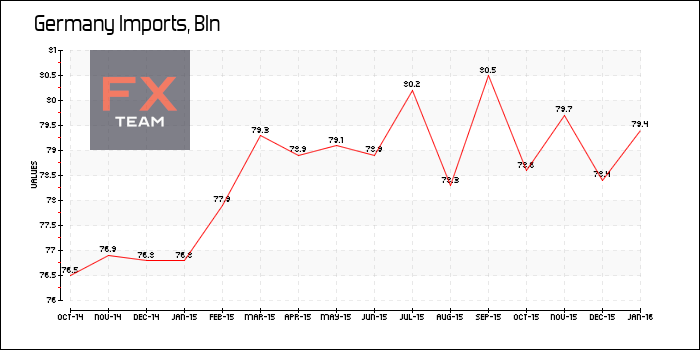 В то же время объем импорта составил 79,4 млрд. евро, увеличившись на 1,2% по сравнению с предыдущим месяцем. Значение показателя превысило прогноз роста на 0,8%.