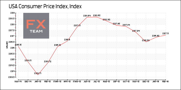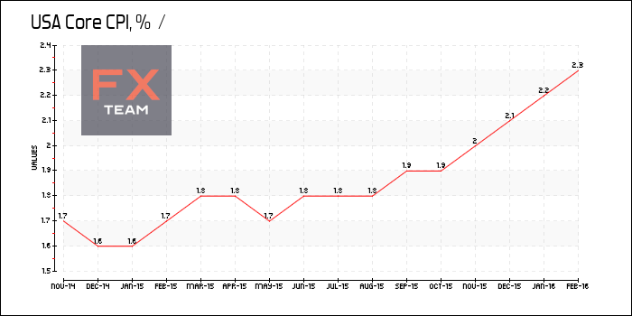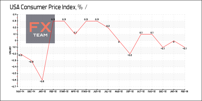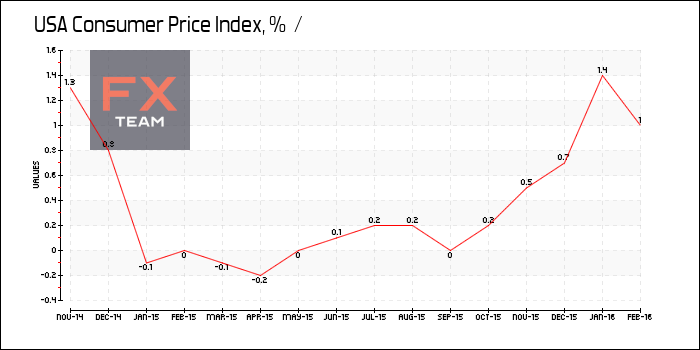 Темпы инфляции в США в годовом выражении замедлились до 1,0% в феврале по сравнению с 1,4% в январе. В то же время, рост индекса без учета цен на продукты питания и энергоносители составил 2,3% в феврале по сравнению с 2,2% в предыдущем месяце.