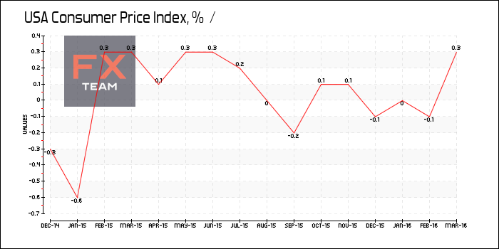 С учетом сезонной поправки индекс потребительских цен (CPI) США увеличился на 0,1% за март 2016 г. в месячном исчислении после снижения на 0,2% в феврале, сообщает Министерство труда. При этом аналитики прогнозировали повышение показателя на 0,2%.