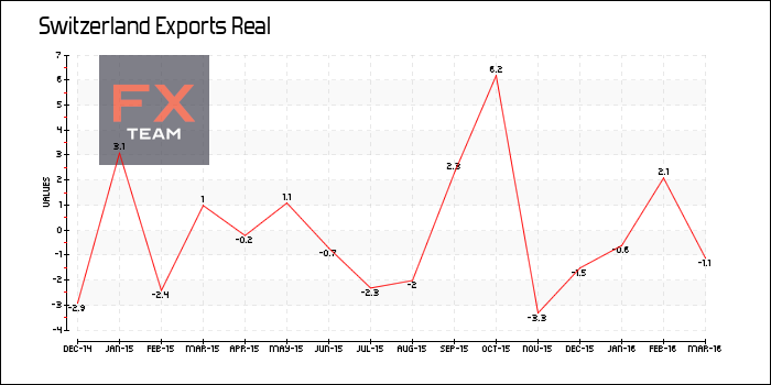 Физический объем экспорта сократился на 1,1% в марте в месячном исчислении, составив 17,8 млрд. швейцарских франков по сравнению с 17,6 млрд. швейцарских франков в предыдущем месяце.
