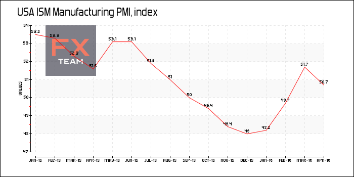 По данным Института ISM, производственный индекс PMI упал до отметки 50,8 в апреле по сравнению с 51,8 в марте.