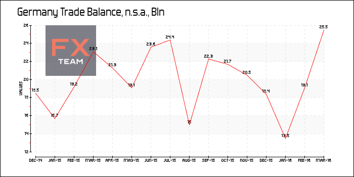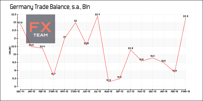 С учетом календарных и сезонных факторов профицит торгового баланса Германии составил 23,6 млрд. евро за март 2016 г. по сравнению с 20,0 млрд. евро в предыдущем месяце, сообщает Федеральное управление статистики. Значение показателя превысило прогноз на уровне 20,4 млрд. евро.