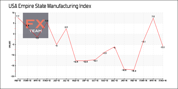 Производственный индекс Empire State от ФРБ Нью-Йорка упал до отрицательной отметки -9,0 в мае по сравнению с положительным значением 9,6 в апреле. Отрицательное значение индекса свидетельствует о снижении производственной активности.