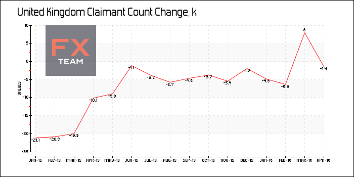 По данным Национального статистического управления, число заявлений на получение пособия по безработице (Claimant count) в Великобритании сократилось на 2 400 за апрель 2016 г. Аналитики прогнозировали увеличение числа заявлений на 4 000 после роста на 14 700 месяцем ранее.