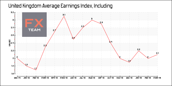 Индекс среднего заработка с учетом премий за три месяца, включая март, повысился до 2,0% по сравнению с предыдущим значением 1,9%, при прогнозе снижения до 1,7%.
