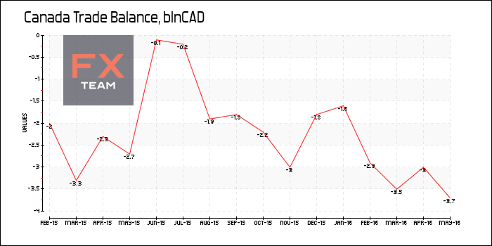 Дефицит баланса внешней торговли Канады составил 3,3 млрд. долларов за май 2016 г., также как и в предыдущем месяце, сообщает Статистическое управление. При этом аналитики прогнозировали снижение дефицита до 2,6 млрд. долларов.