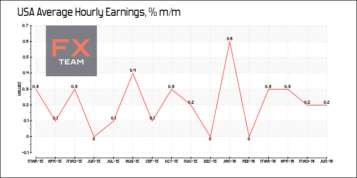 Средний почасовой заработок возрос на 0,1% до $25,61 в июне. По сравнению с аналогичным периодом прошлого года этот показатель повысился на 2,6%.