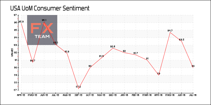 По данным Мичиганского университета, индекс настроений потребителей упал до отметки 89,5 в начале июля по сравнению с 93,5 в конце июня.