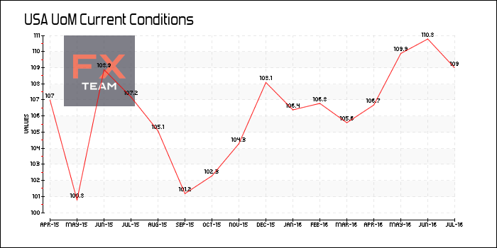 Индекс оценки текущих экономических условий упал до 108,7 в июле по сравнению с 110,8 в июне.