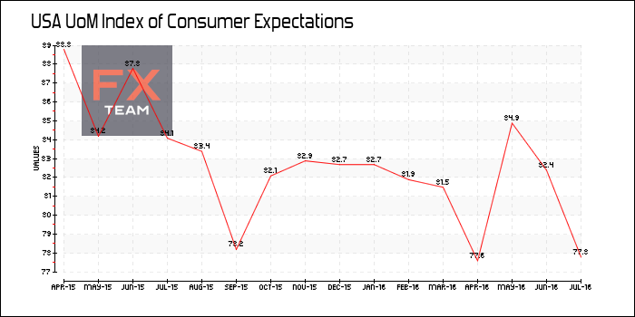 Индекс потребительских ожиданий снизился до 77,1 в июле по сравнению с 82,4 в прошлом месяце, оказавшись на рекордно низкой отметке за последний год.