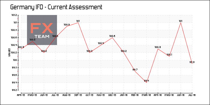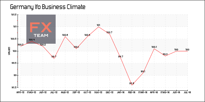 Индикатор условий деловой среды в сферах торговли и промышленности Германии, рассчитываемый немецким экономическим институтом Ifo, с учетом сезонных факторов составил 108,3 пункта в июле 2016 г. по сравнению с 108,7 пункта в предыдущем месяце.