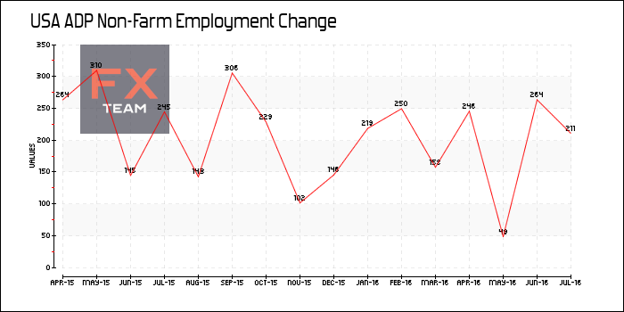 По данным процессинговой компании ADP, число рабочих мест в частном секторе увеличилось на 179,0 тыс. в июле после роста на 176,0 тыс. в предыдущем месяце.