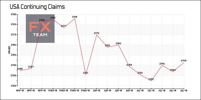 При этом число американцев, продолжающих получать пособия по безработице, возросло за неделю к 30 июля на 14,0 тыс. до 2,16 млн.
