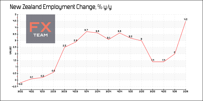 По данным Statistics New Zealand, занятость повысилась на 2,4% во втором квартале после роста на 1,2% в предыдущем квартале. Экономисты прогнозировали рост данного показателя на 0,6% в отчетном периоде. В числовом выражении занятость в Новой Зеландии возросла на 58,0 тыс. до 2,46 млн.