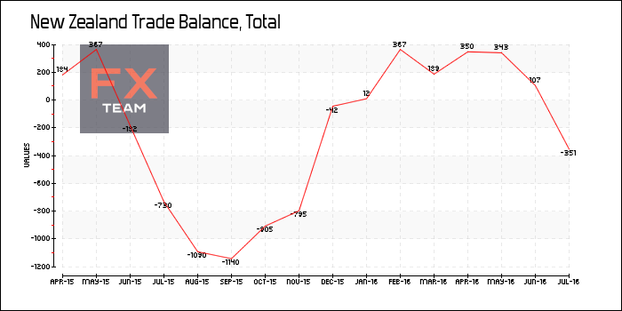 Дефицит баланса внешней торговли Новой Зеландии составил 433 млн. новозеландских долларов в июле 2016 г. по сравнению с профицитом в размере 110 млн. долларов в предыдущем месяце. Аналитики прогнозировали дефицит на уровне 320 млн. долларов.