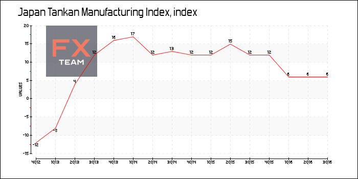 Индекс активности в секторе крупных производителей Tankan Японии составил 6 пунктов за третий квартал 2016 г., также как в предыдущем квартале, сообщает Банк Японии. Экономисты прогнозировали повышение показателя до 7 пунктов.
