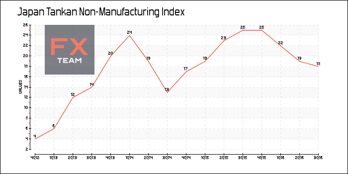 Индекс активности в непроизводственном секторе Tankan снизился до 18 пунктов в третьем квартале по сравнению с 19 пунктами во втором квартале, что соответствует ожиданиям.