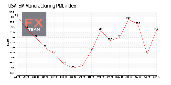 По данным института ISM, индекс PMI для производственного сектора возрос до отметки 51,5 в сентябре по сравнению с 49,4 в августе. Отметим, что августовское падение производственного индекса ниже ключевой отметки 50,0 было первым с февраля текущего года.