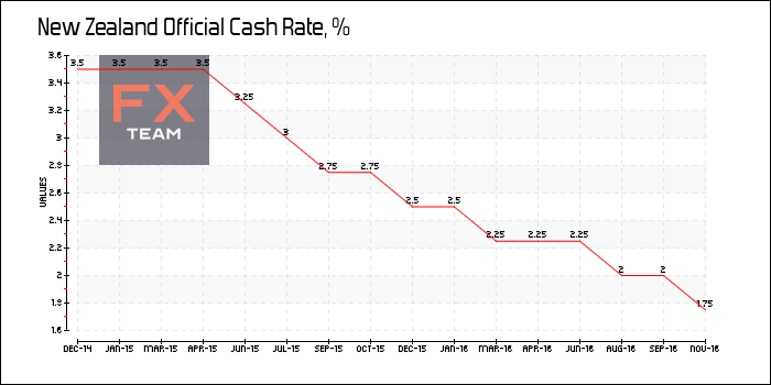 - Резервный Банк Новой Зеландии снизил основную процентную ставку до 1,75%