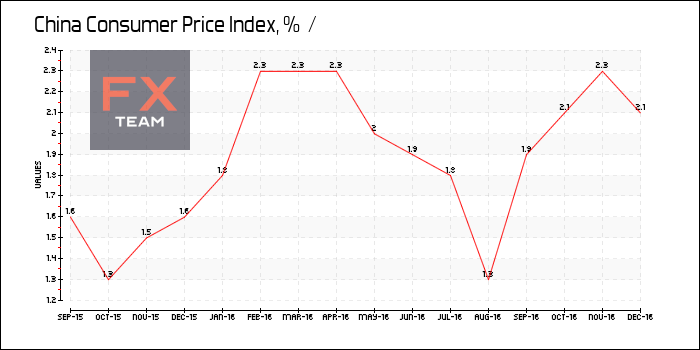 Индекс потребительских цен Китая увеличился на 2,1% в декабре 2016 г. в годовом исчислении по сравнению с 2,3% в ноябре, сообщает Национальное бюро статистики. Значение показателя оказалось ниже прогнозируемого уровня 2,2%.