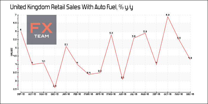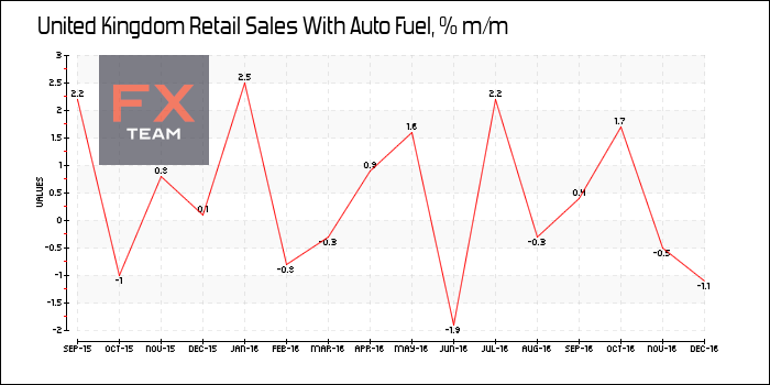 Объем розничной торговли Великобритании с учетом затрат на топливо сократился на 1,9% в декабре 2016 г. в месячном исчислении, сообщает Национальное статистическое управление. При этом ожидалось снижение индекса на 0,1% так же, как и в предыдущем месяце.