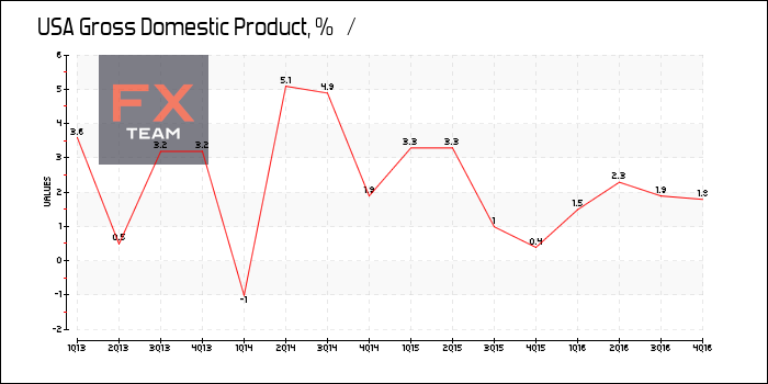 По итогам 2016 года темпы роста американской экономики замедлились до 1,6% по сравнению с 2,6% в 2015 году.