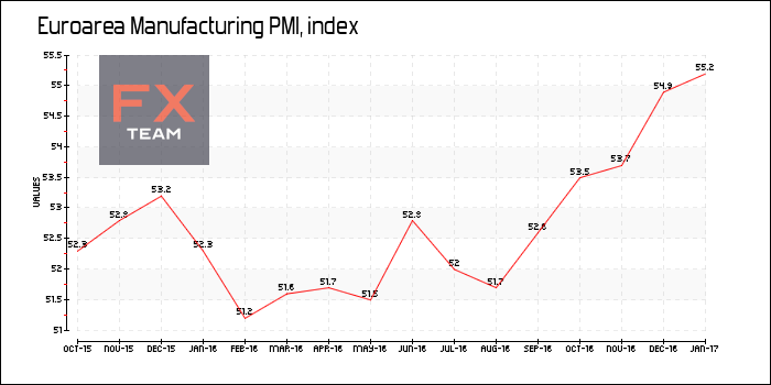 По данным Markit, темпы роста деловой активности в производственном секторе Еврозоны в январе превзошли первоначальную оценку и оказались на самом высоком уровне за 69 месяцев.
