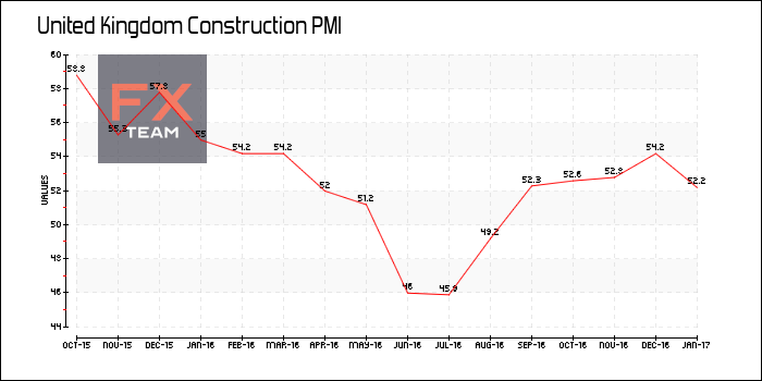С учетом сезонных факторов, индекс PMI для строительного сектора Великобритании составил 52,2 пункта в январе 2017 г. по сравнению с 54,2 пункта в предыдущем месяце, сообщает IHSMarkit. Ожидалось снижение показателя до 53,9 пункта.