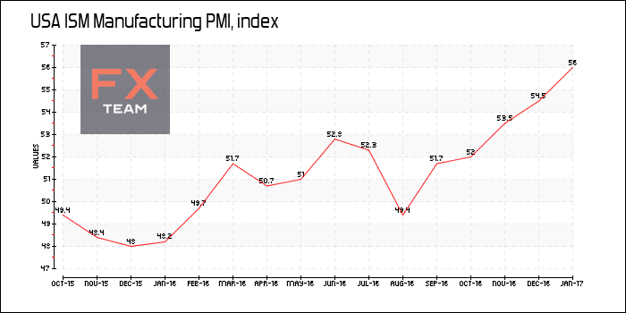 По данным института ISM, индекс PMI для производственного сектора США возрос до 57,7в феврале по сравнению с 56,0 в январе. Таким образом, данный показатель достиг самого высокого уровня с августа 2014 года.