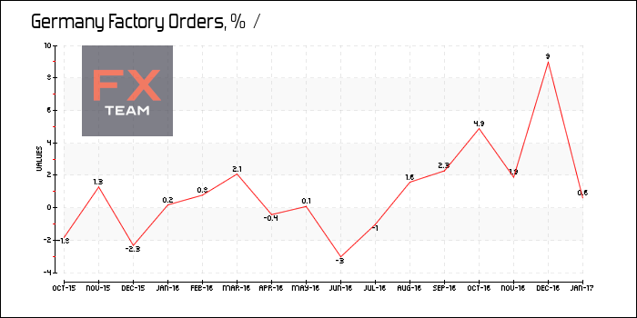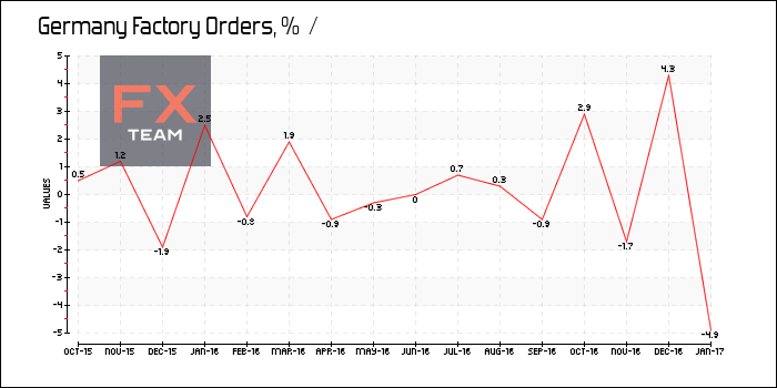 Объем внутренних заказов в Германии уменьшился на 10,5% в январе, в то время как объем зарубежных заказов сократился на 4,9%. Объем производственных заказов, которые поступили из Еврозоны, снизился на 7,8%.