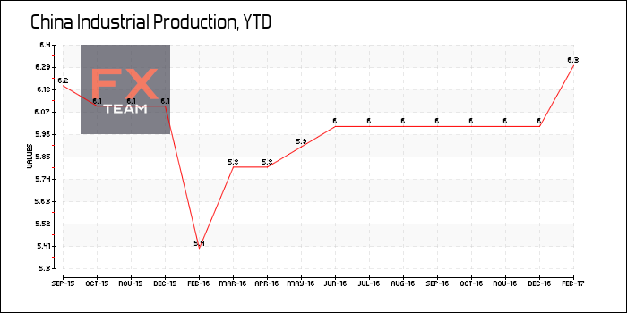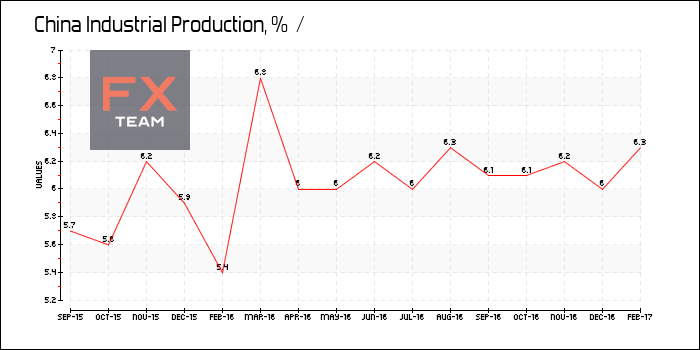 Объем промышленного производства Китая вырос на 6,3% в феврале 2017 г. в годовом исчислении по сравнению с увеличением на 6,0% в декабре, сообщает Национальное статистическое управление Китая. Значение показателя превысило ожидания аналитиков, прогнозировавших прирост на 6,2%.