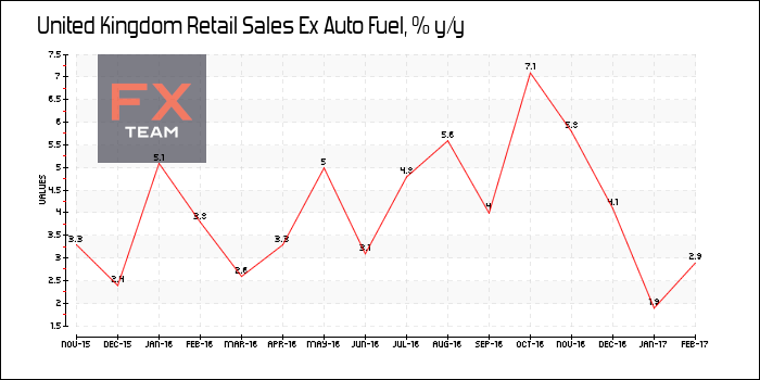 В годовом выражении темпы роста розничных продаж в Великобритании составили 4,1% в феврале по сравнению с 2,1% в январе.