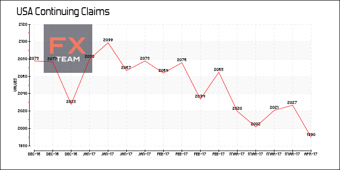 Число повторных заявок на получение пособия по безработице за неделю к 1 апреля уменьшилось на 7 000 до 2 028 000. Значение предыдущей недели было пересмотрено с повышением на 7 000 до 2 035 000.