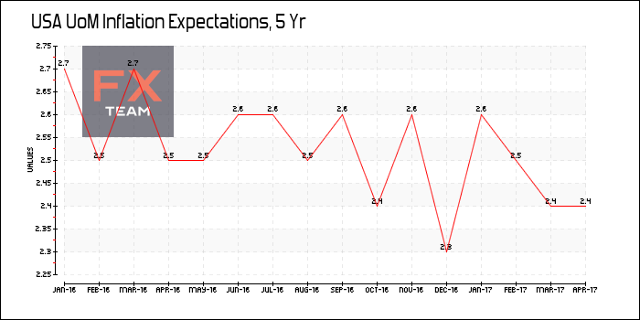 В то же время, инфляционные ожидания на год и на пять лет остались на прежних уровнях 2,5% и 2,4%, соответственно.