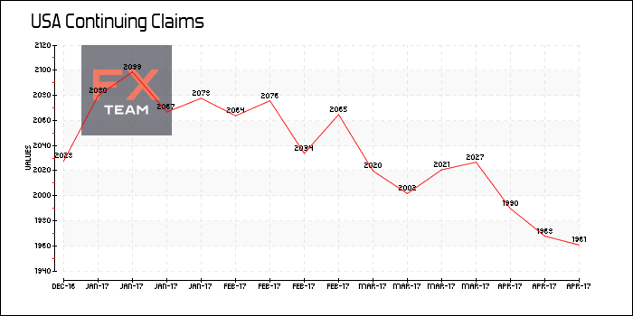 Число повторных заявок на получение пособия по безработице увеличилось за неделю к 15 апреля на 10 000, до 1 988 000. Предыдущее значение показателя было пересмотрено в меньшую сторону на 1 000, с 1 979 000 до 1 978 000.