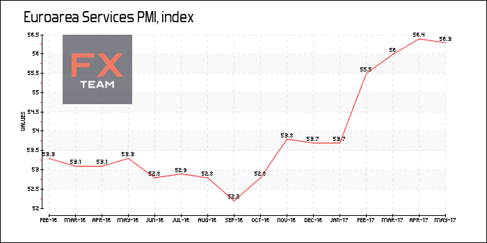 В то же время, индекс деловой активности в секторе услуг незначительно снизился, с 56,4 пункта до 56,2 пункта в мае при прогнозе 56,5 пункта. Несмотря на это, темпы роста остаются высокими.