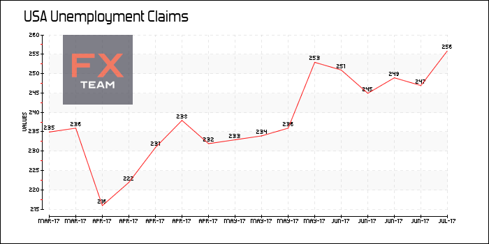 По данным Департамента труда США, число первичных обращений за пособием по безработице в США увеличилось за неделю к 1 июля на 4,0 тыс. до 248,0 тыс.