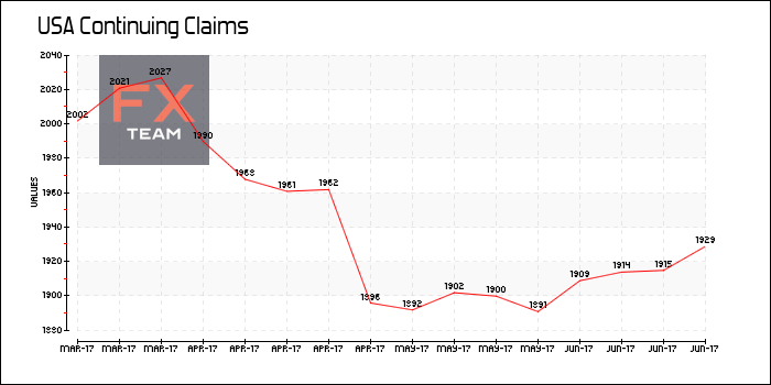 При этом число американцев, продолжающих получать пособия по безработице, повысилось за неделю к 24 июня на 11,0 тыс. до 1,956 млн.